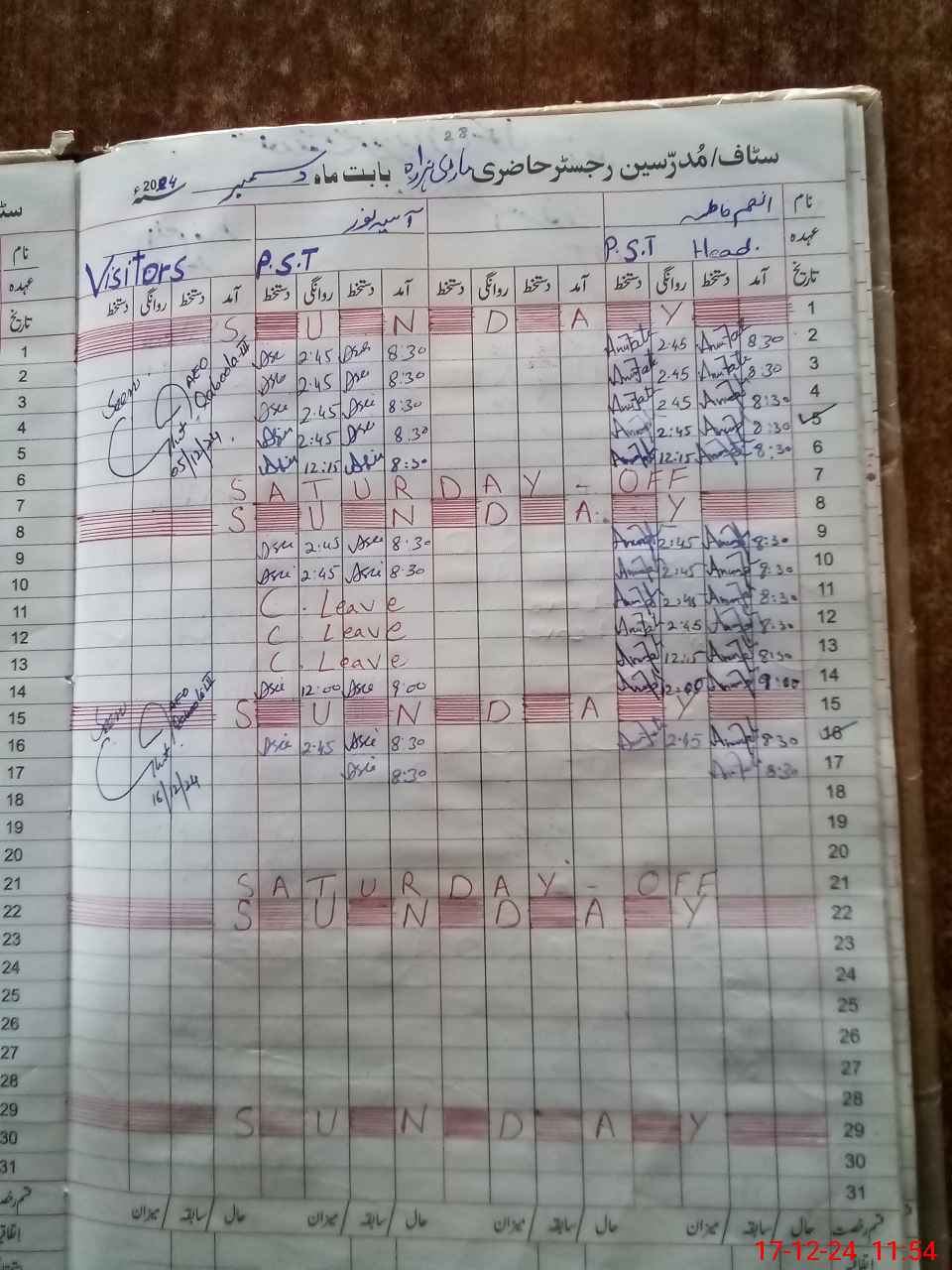 | Leave | Duty | Absent | Maternity | Medical | Ex- Pak |