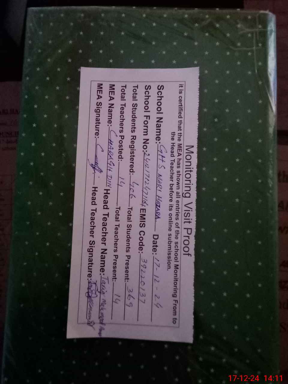 | EMIS Code: 39220137 | Name of School: GHS MARI HAZARA | |||