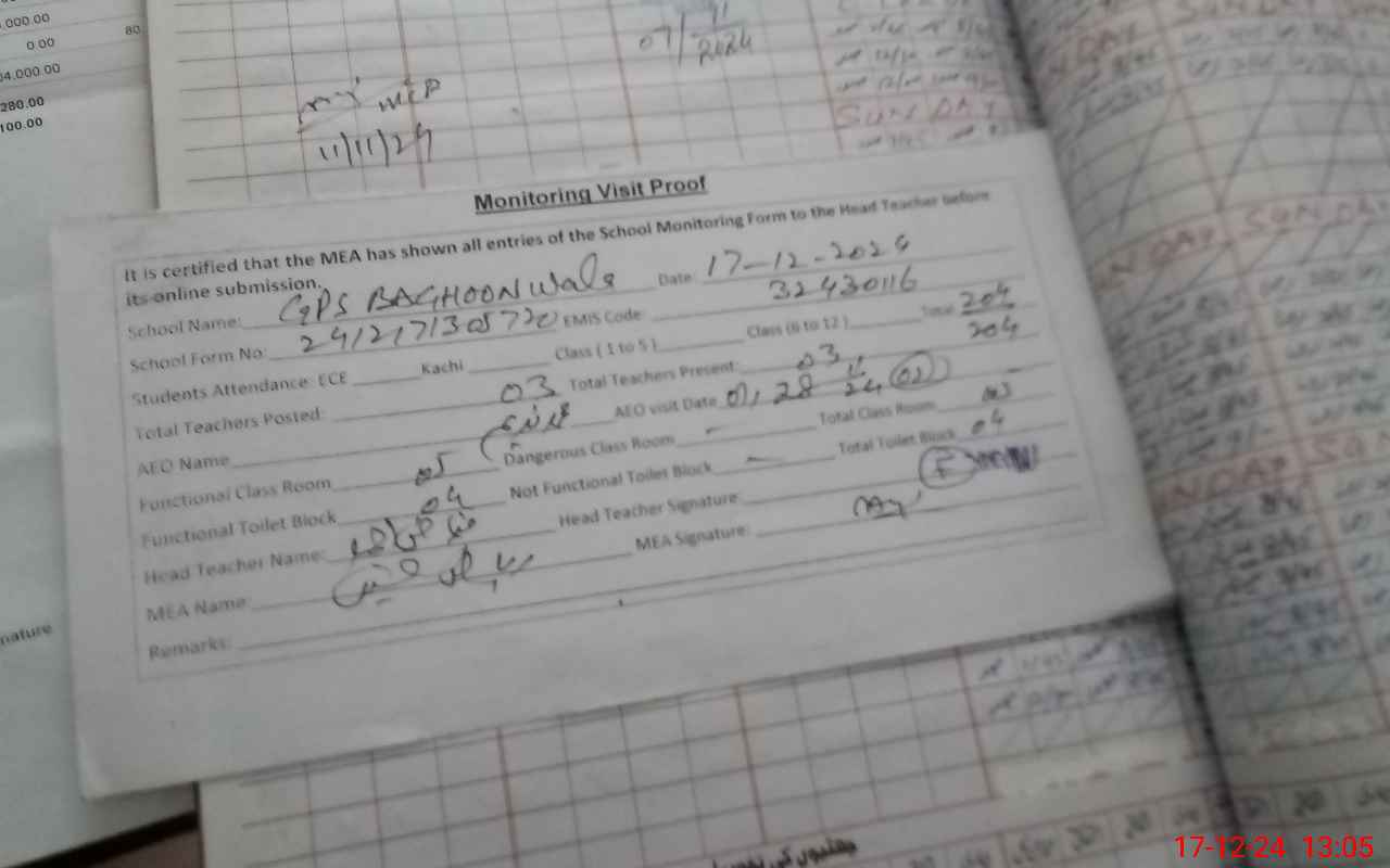 | EMIS Code: 32430116 | Name of School: GPS BAGHOON WALA | |||