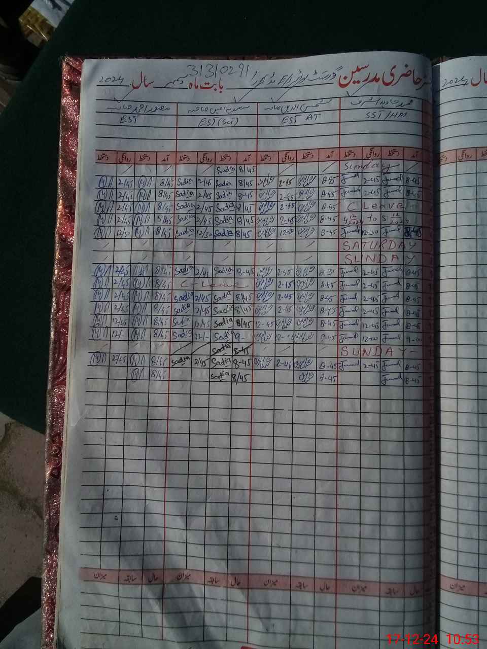 | CNIC | Full Name | Designation | R/C | Absence During Last Calender Month |