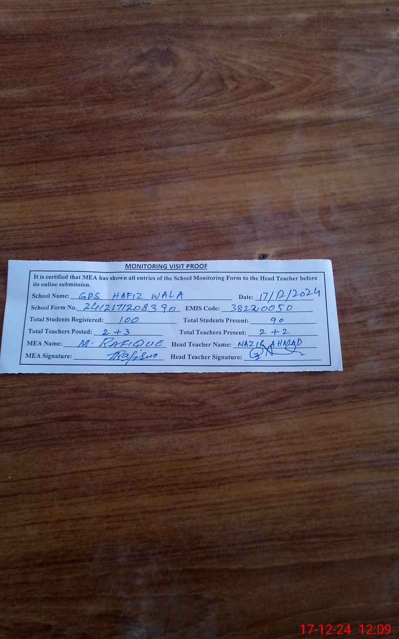 | EMIS Code: 38220050 | Name of School: GPS HAFIZ WALA | |||