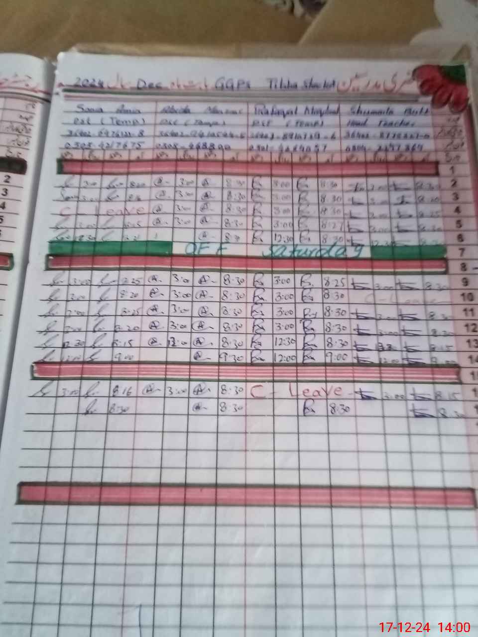 | CNIC | Full Name | Designation | R/C | Absence During Last Calender Month |