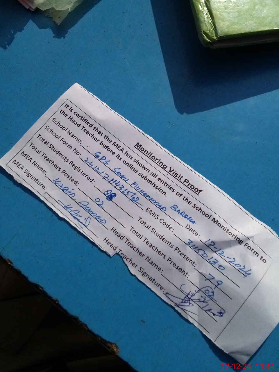 | EMIS Code: 31150130 | Name of School: GPS SHAH MUHAMMAD BARAKA | |||