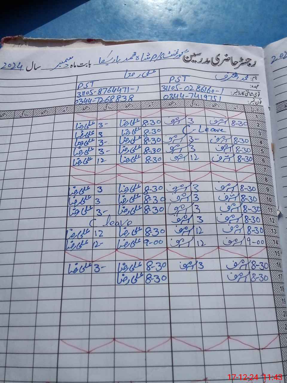 | Name: MU**** AS**** Designation: (School Headmaster's/Headmistress's) PST Phone/Cell Number: 03**** |