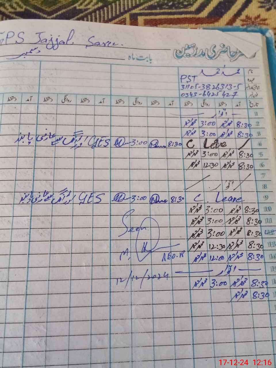 | Name: MU**** AH**** Designation: (School Headmaster's/Headmistress's) PST Phone/Cell Number: 03**** |