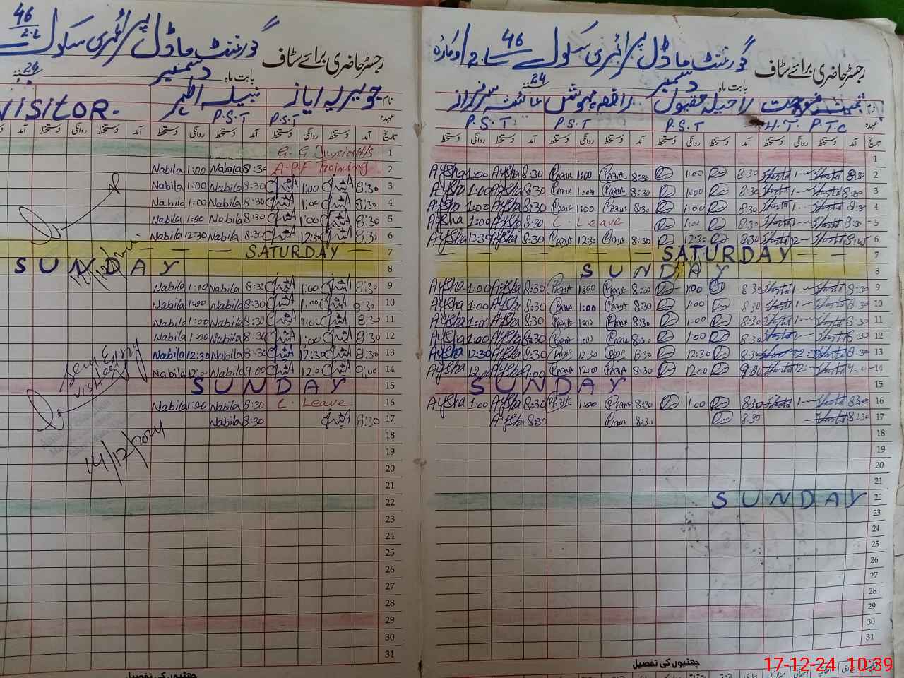 | Leave | Duty | Absent | Maternity | Medical | Ex- Pak |