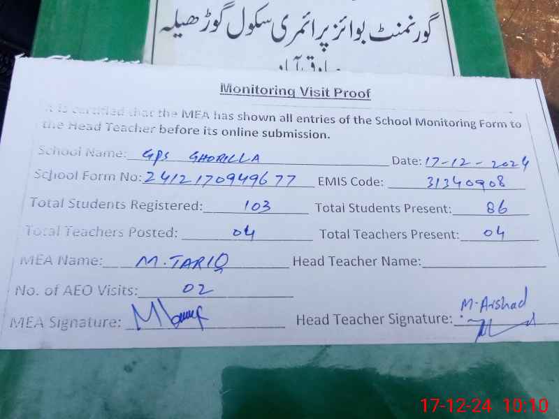 | EMIS Code: 31340908 | Name of School: GPS GHORELA | |||