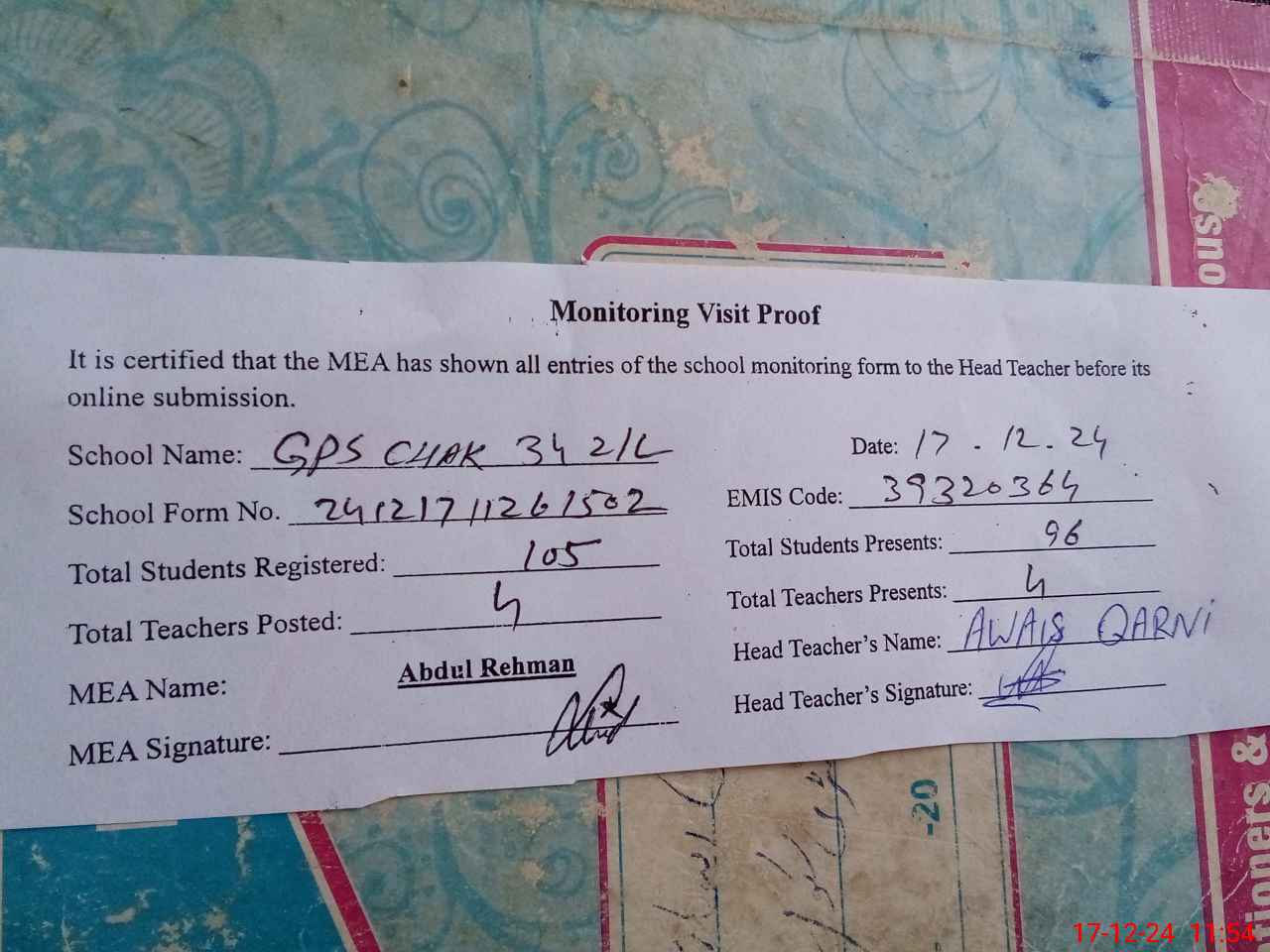 | EMIS Code: 39320364 | Name of School: GPS CHAK 34/2-L | |||