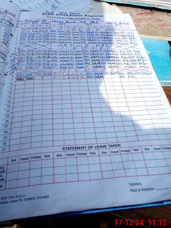 | Name: RE**** AL**** Designation: (School Headmaster's/Headmistress's) PST/PTC/JV Phone/Cell Number: 03**** |