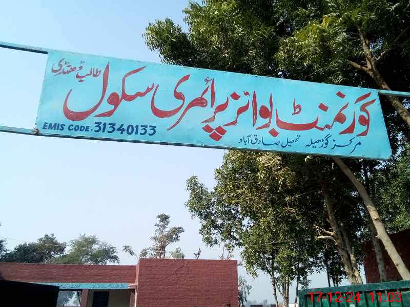 | District: RAHIMYAR KHAN | Tehsil: SADIQABAD | Markaz: GORHELA-MALE | Level: Primary | |