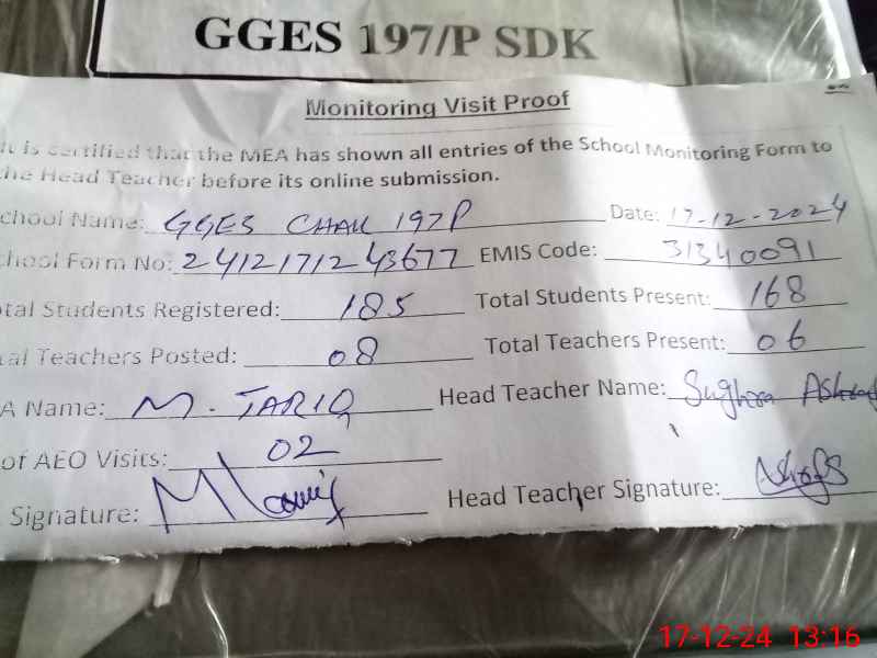 | Certified that this School was Inspected by the Undersigned MEA/DMO Today and the Information Stated Above is as Per Record. | |||||