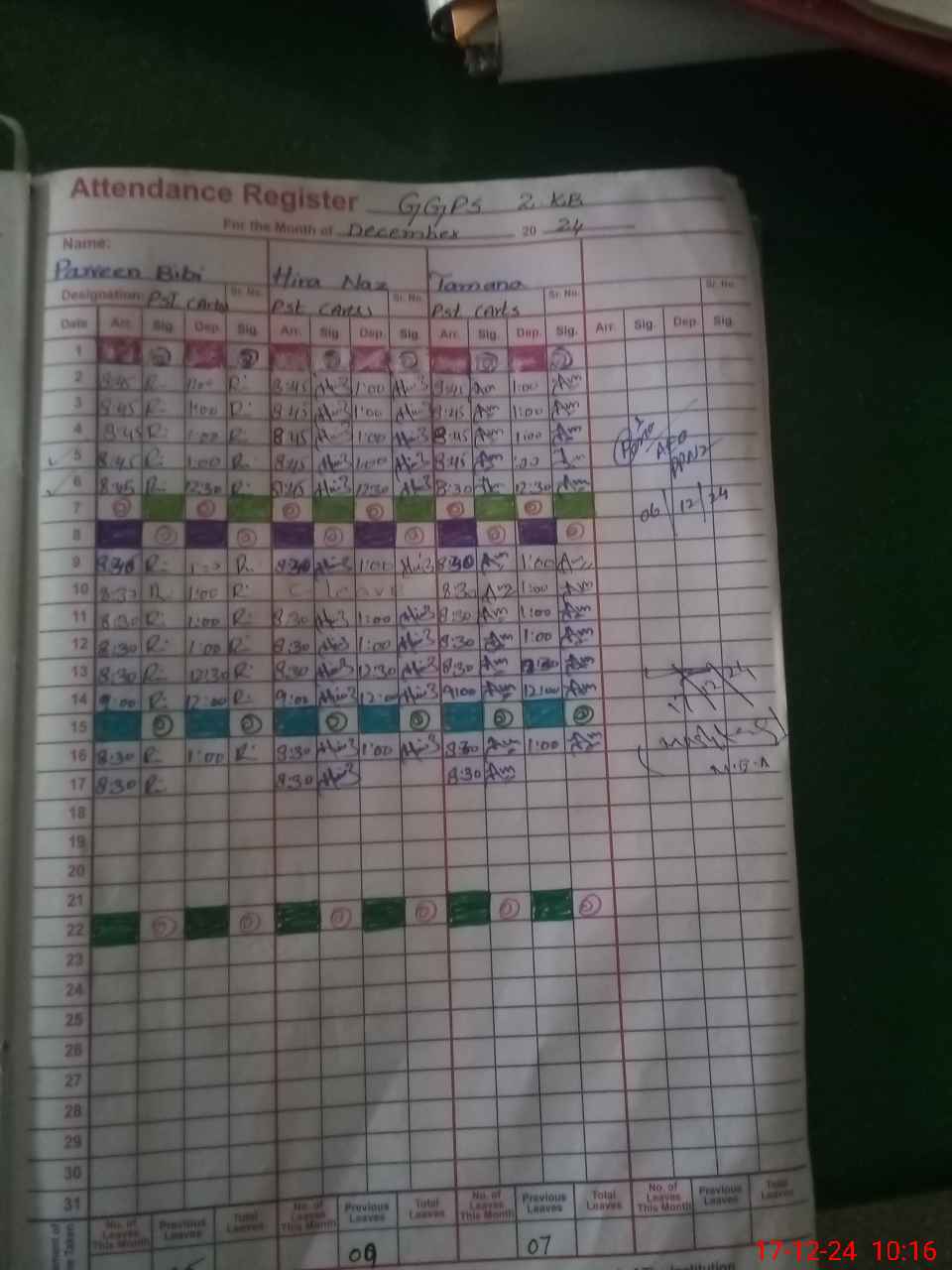 | CNIC | Full Name | Designation | R/C | Absence During Last Calender Month |