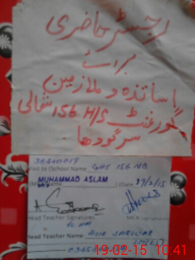 | EMIS Code: 38440019 | Name of School: GHS CHAK NO.156 NB | |||