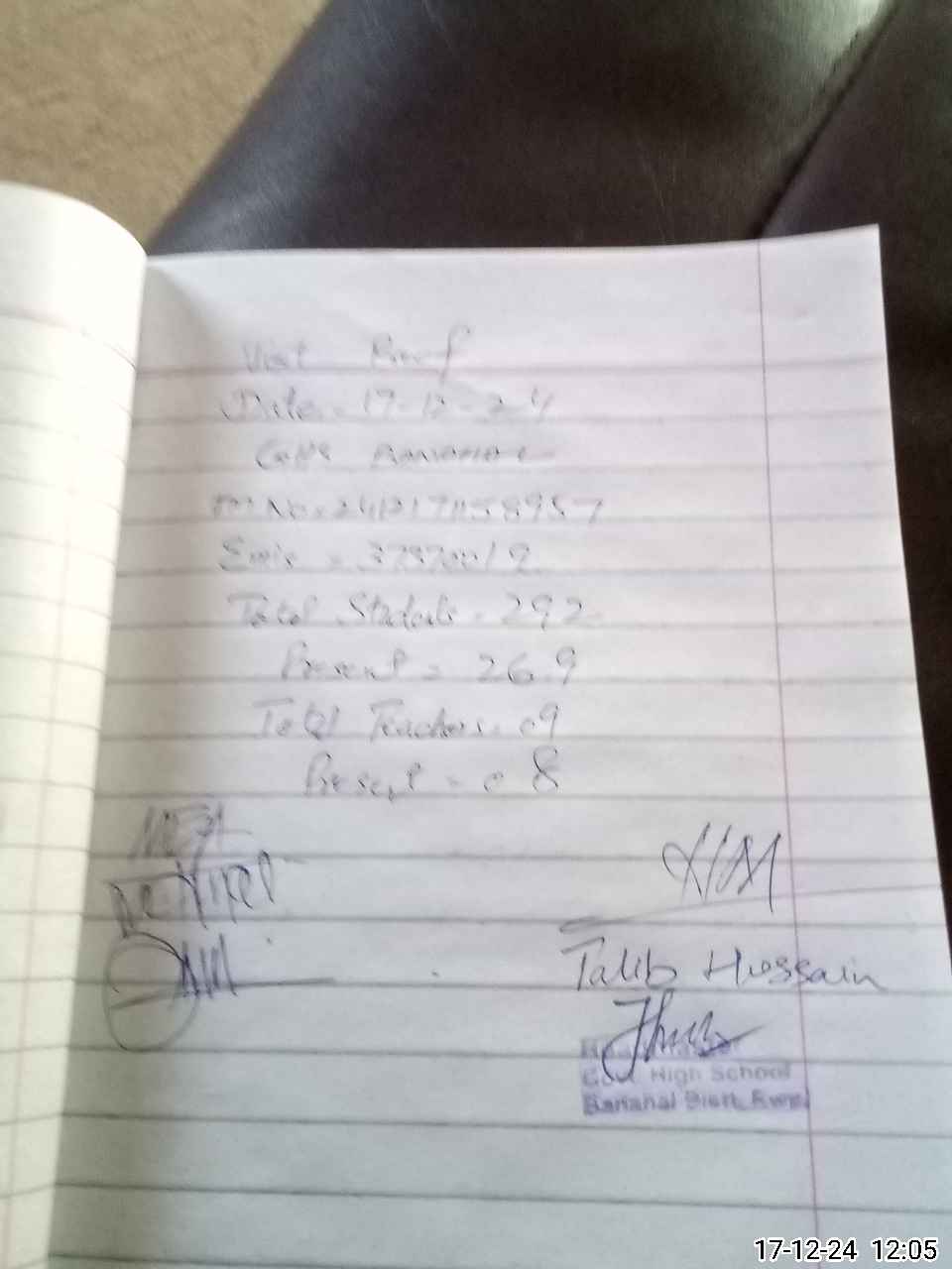 | EMIS Code: 37370019 | Name of School: GHS BANHAL | |||