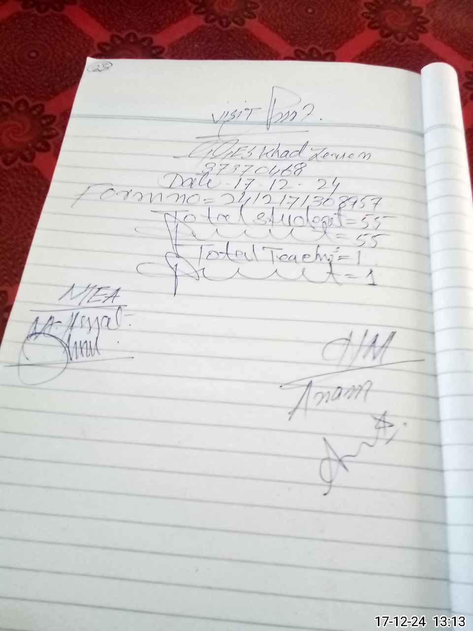 | Attendance Register | Head Teacher | MEA with School | Visit Proof |