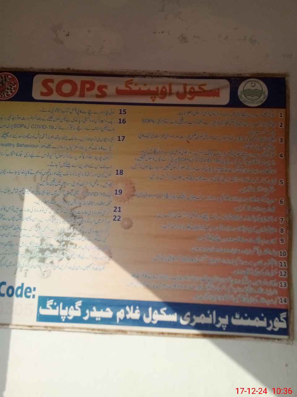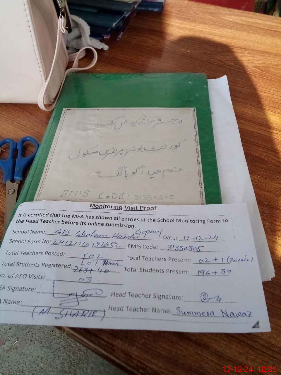 | EMIS Code: 31330305 | Name of School: GPS GHULAM HAIDER GOPANG | |||