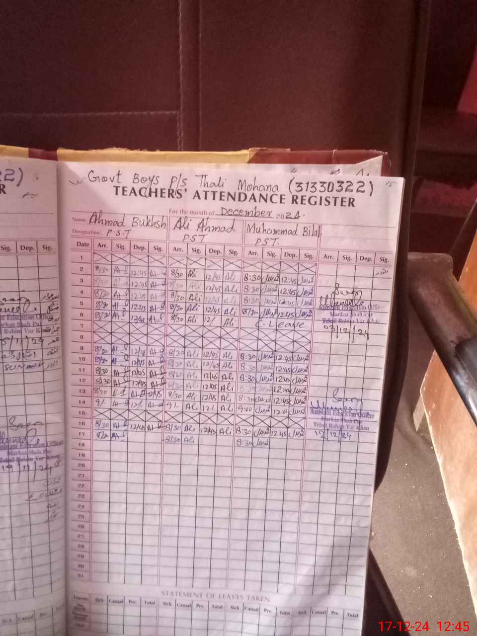 | Name: AH**** BU**** Designation: (School Headmaster's/Headmistress's) P S T Phone/Cell Number: 03**** |