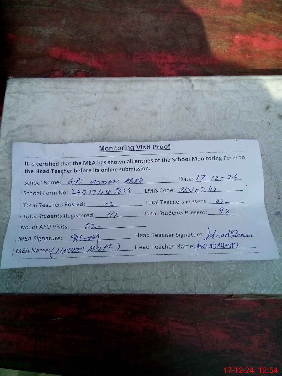 | EMIS Code: 31310242 | Name of School: GPS MOMAN ABAD | |||