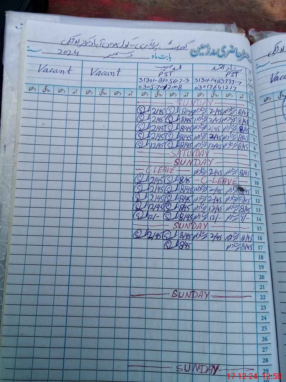 | Name: IR**** AH**** Designation: (School Headmaster's/Headmistress's) PST Phone/Cell Number: 03**** |