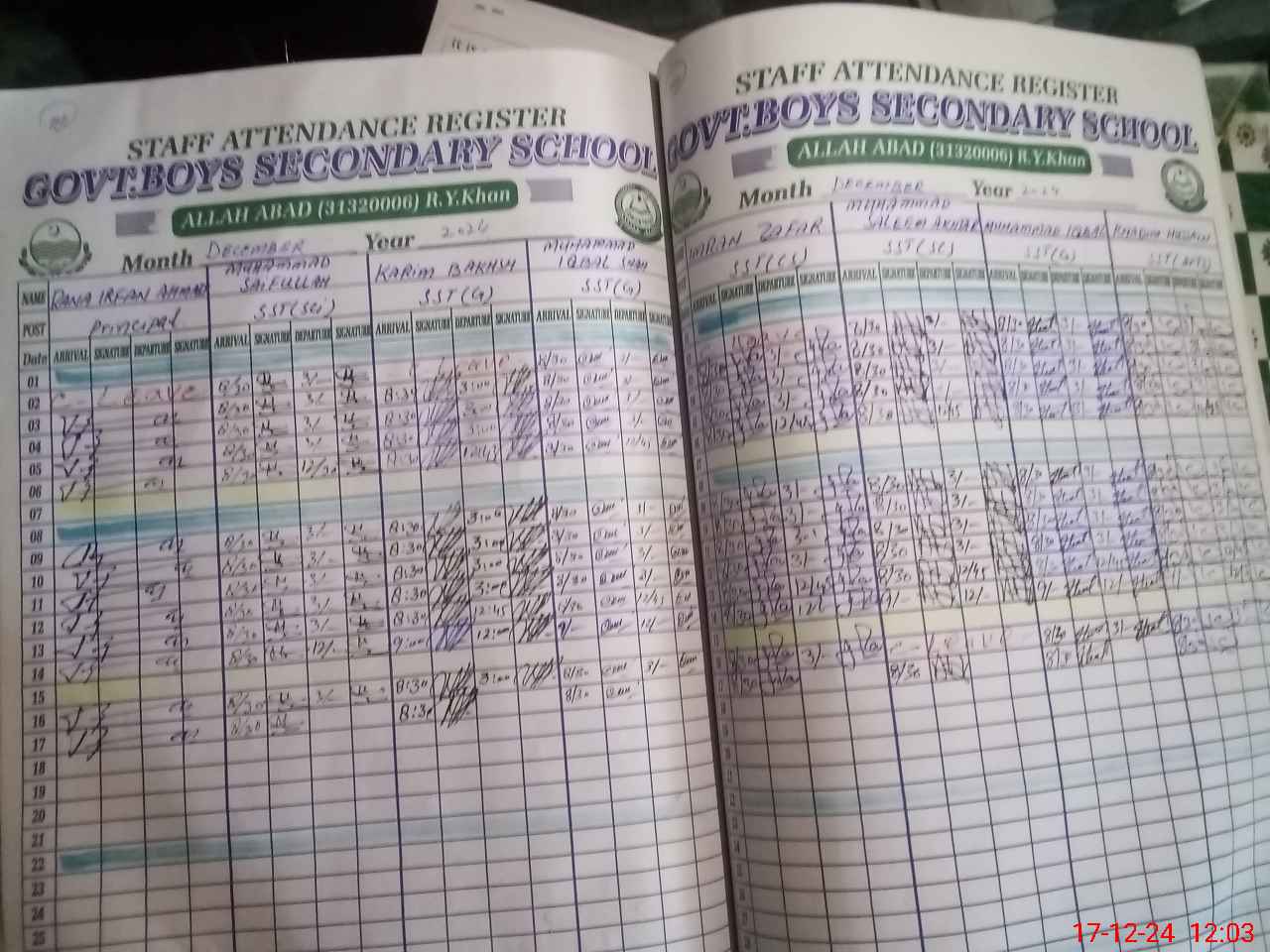 | CNIC | Full Name | Designation | R/C | Absence during last cal. month |