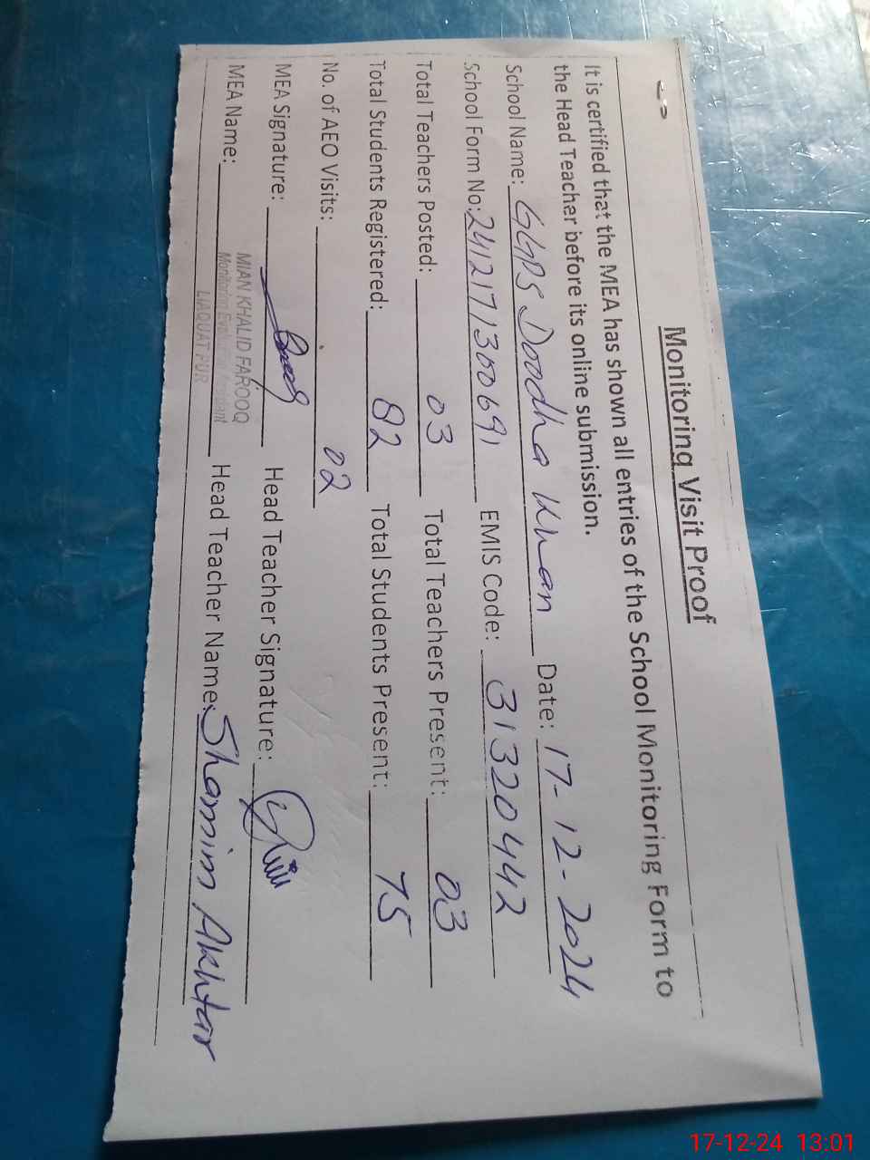 | EMIS Code: 31320442 | Name of School: GGPS DOODA KHAN ALLAH ABAD | |||