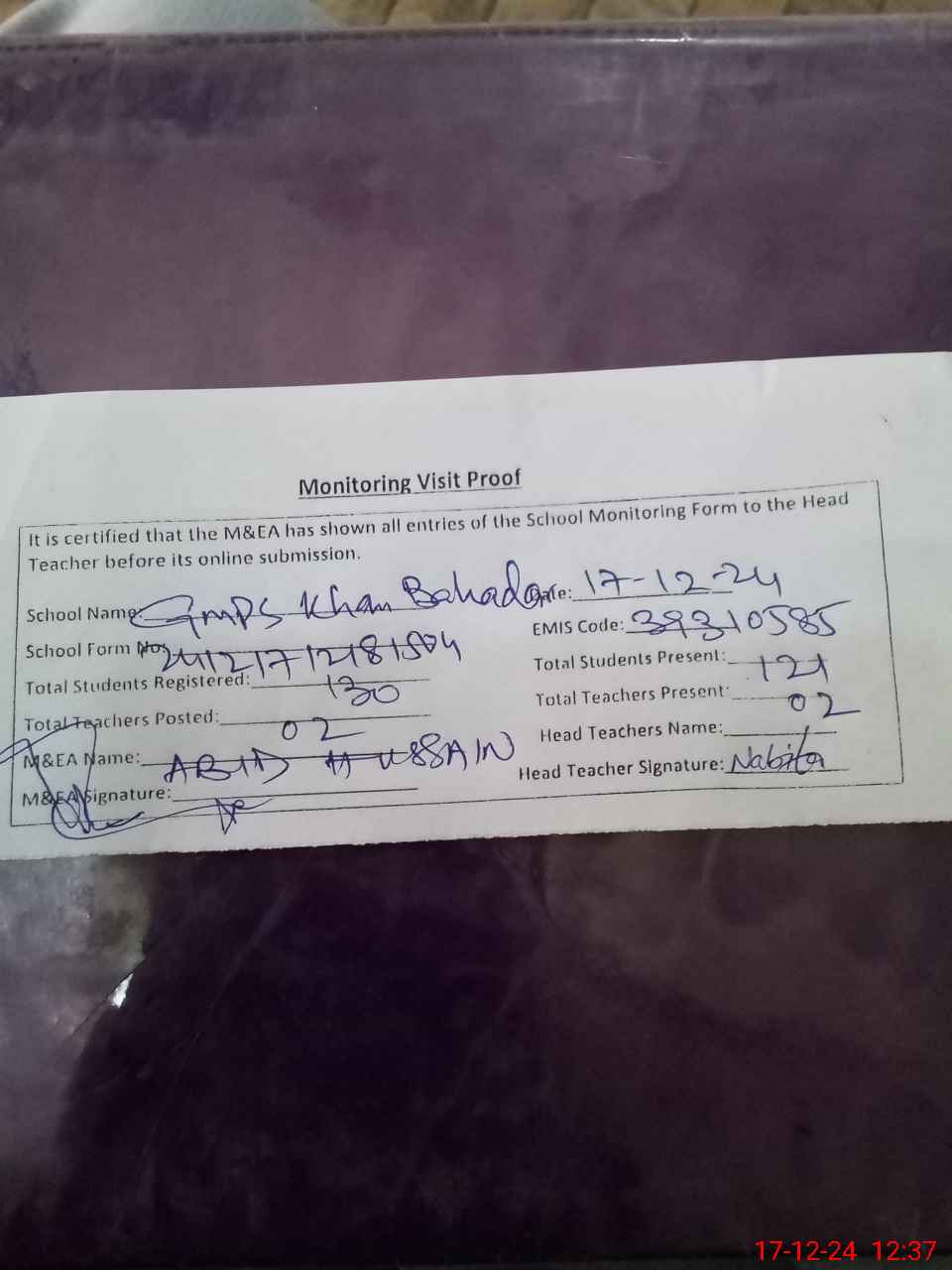 | EMIS Code: 39310585 | Name of School: GMPS KHAN BAHADAR | |||