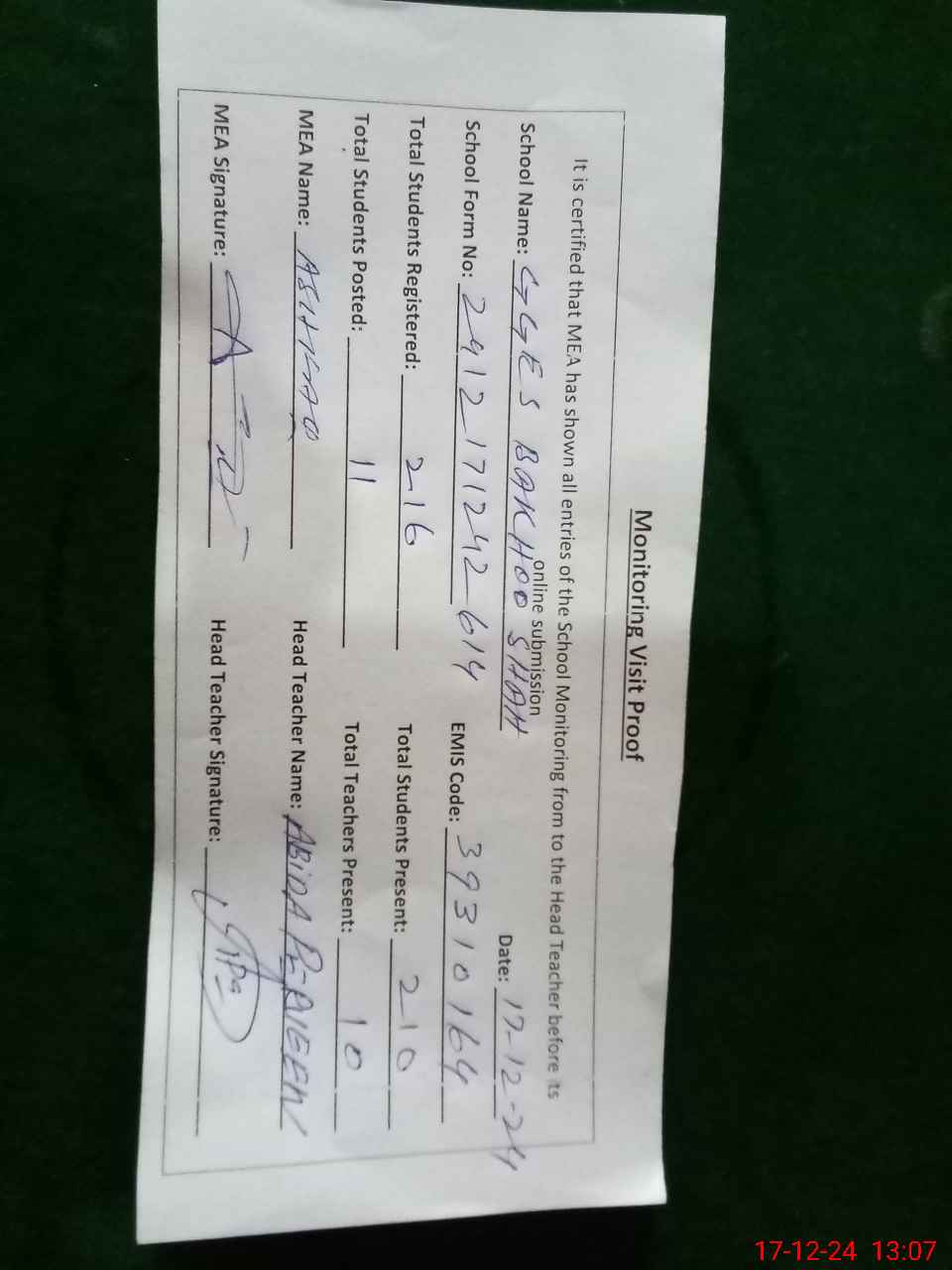 | EMIS Code: 39310164 | Name of School: GGES BAKHOO SHAH | |||