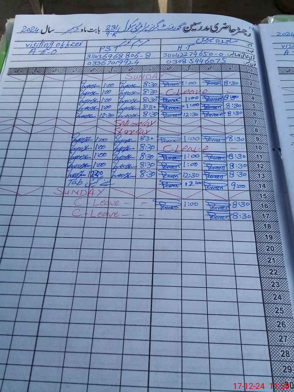 | Name: SA**** PE**** Designation: (School Headmaster's/Headmistress's) PTC/JV Phone/Cell Number: 03**** |