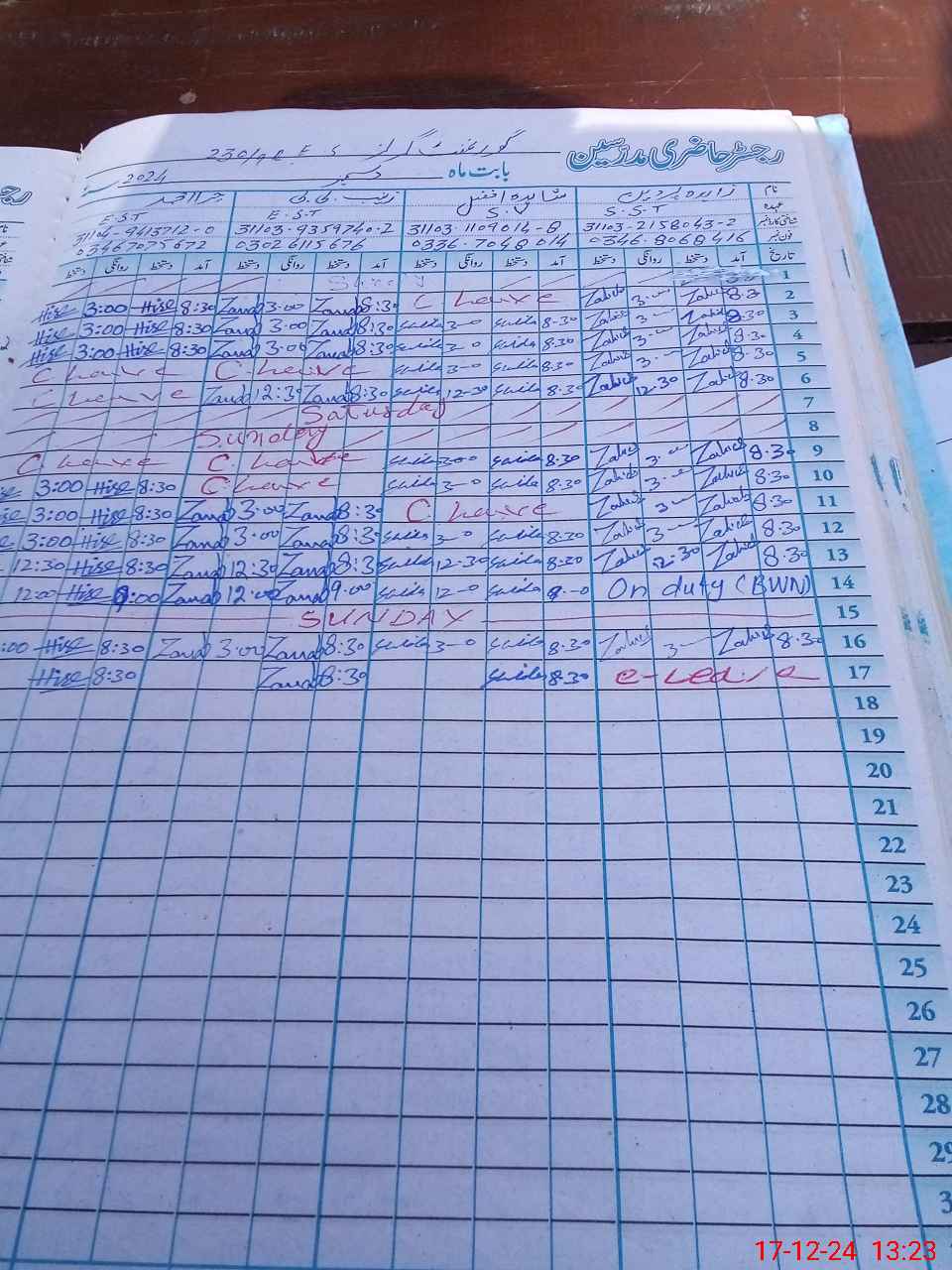 | CNIC | Full Name | Designation | R/C | Absence During Last Calender Month |