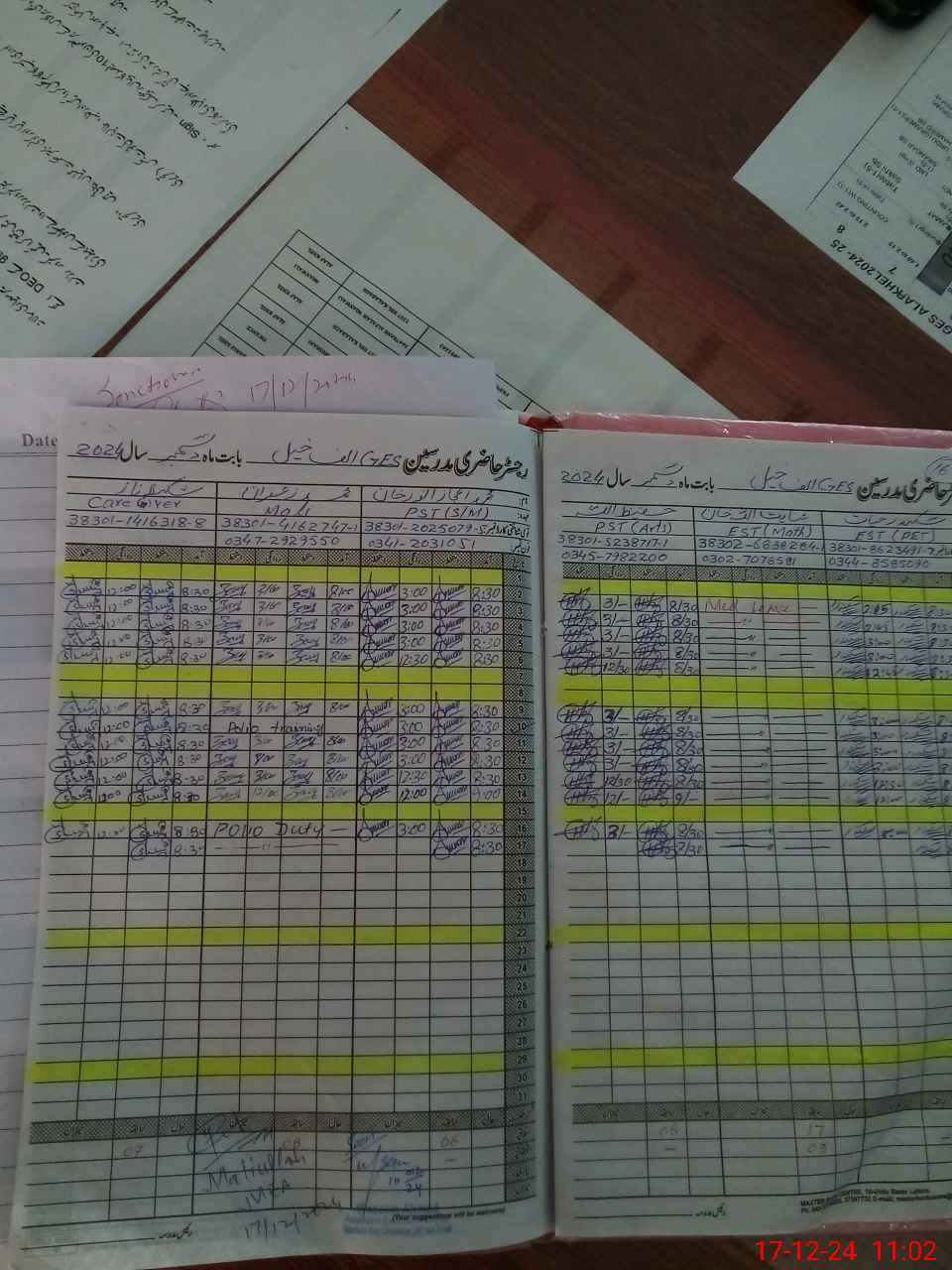 | CNIC | Full Name | Designation | R/C | Absence During Last Calender Month |