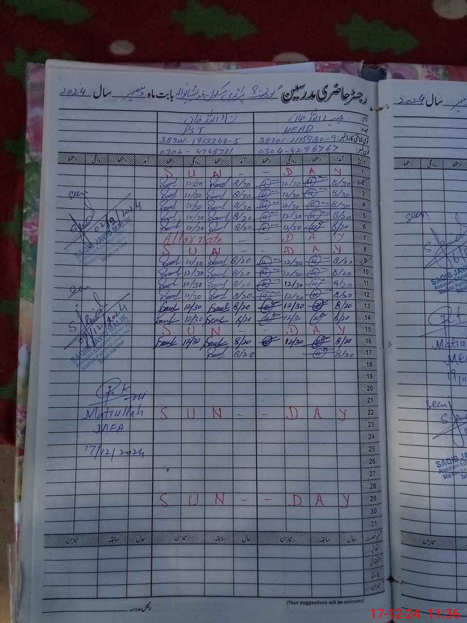 | Name: Sa**** Ul**** Kh**** Designation: (School Headmaster's/Headmistress's) PST Phone/Cell Number: 03**** |