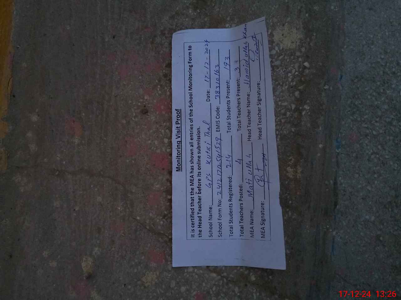 | EMIS Code: 38310163 | Name of School: GPS KUTKI THAL | |||
