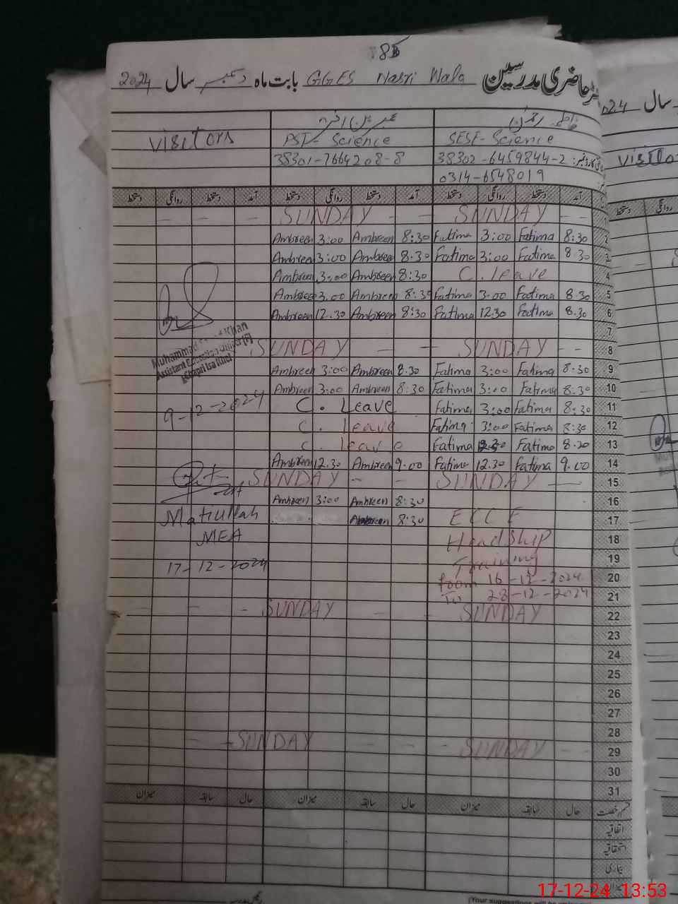 | Name: Fa**** Re**** Designation: (School Headmaster's/Headmistress's) SSE Science Phone/Cell Number: 03**** |