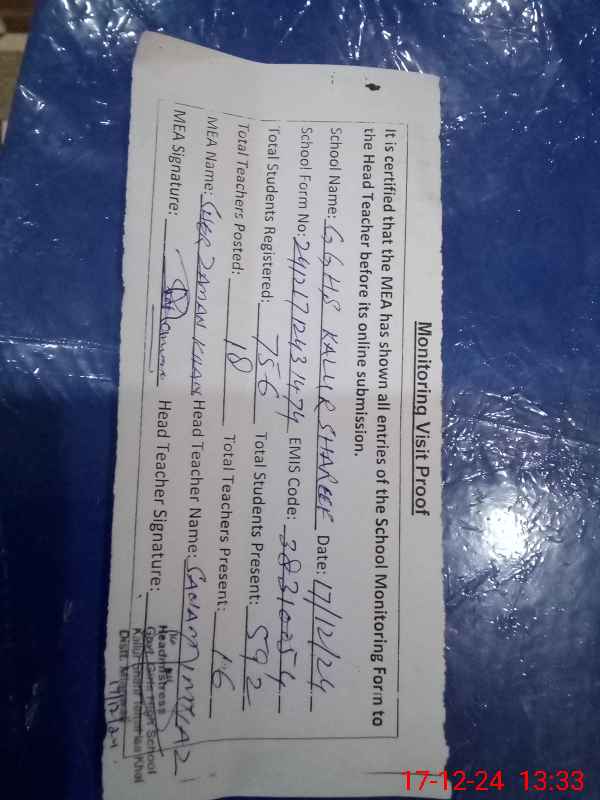 | EMIS Code: 38310054 | Name of School: GGHS KALUR SHAREEF | |||