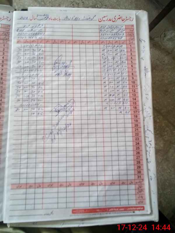 | CNIC | Full Name | Designation | R/C | Absence During Last Calender Month |