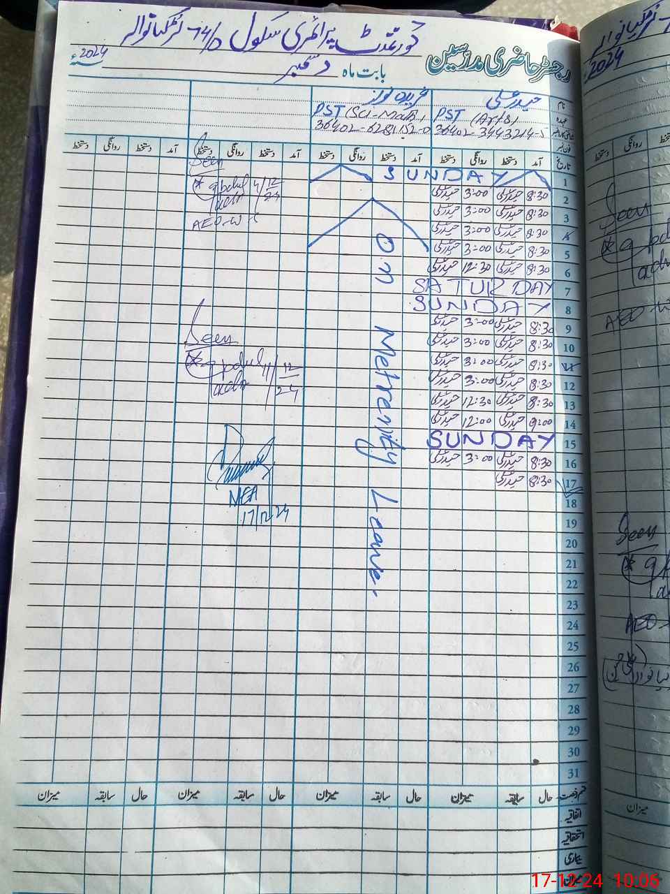 | Name: HA**** AL**** Designation: (School Headmaster's/Headmistress's) PST Phone/Cell Number: 03**** |
