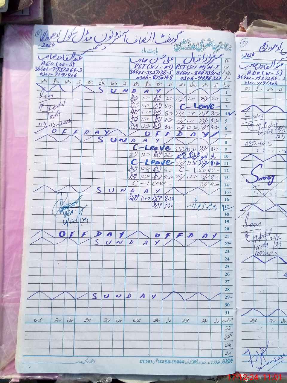 | CNIC | Full Name | Designation | R/C | Absence During Last Calender Month |