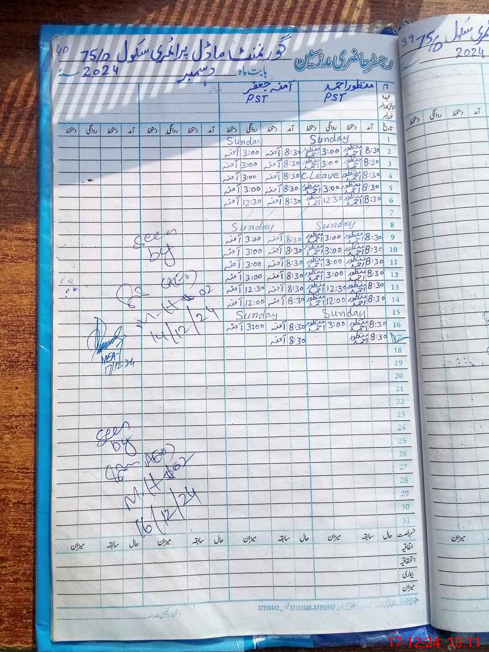 | Name: MA**** AH**** Designation: (School Headmaster's/Headmistress's) PST Phone/Cell Number: 03**** |
