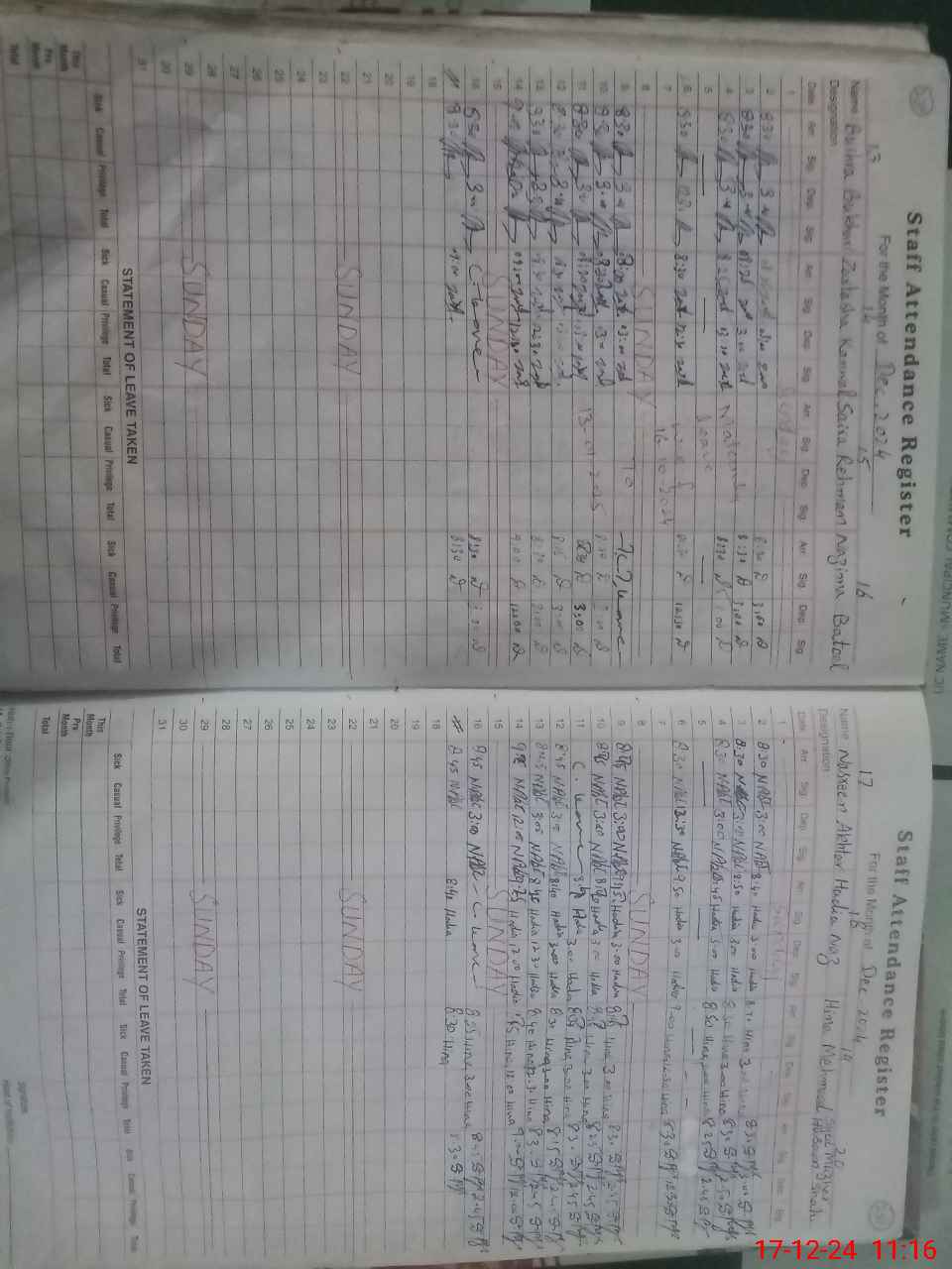| CNIC | Full Name | Designation | R/C | Absence During Last Calender Month |