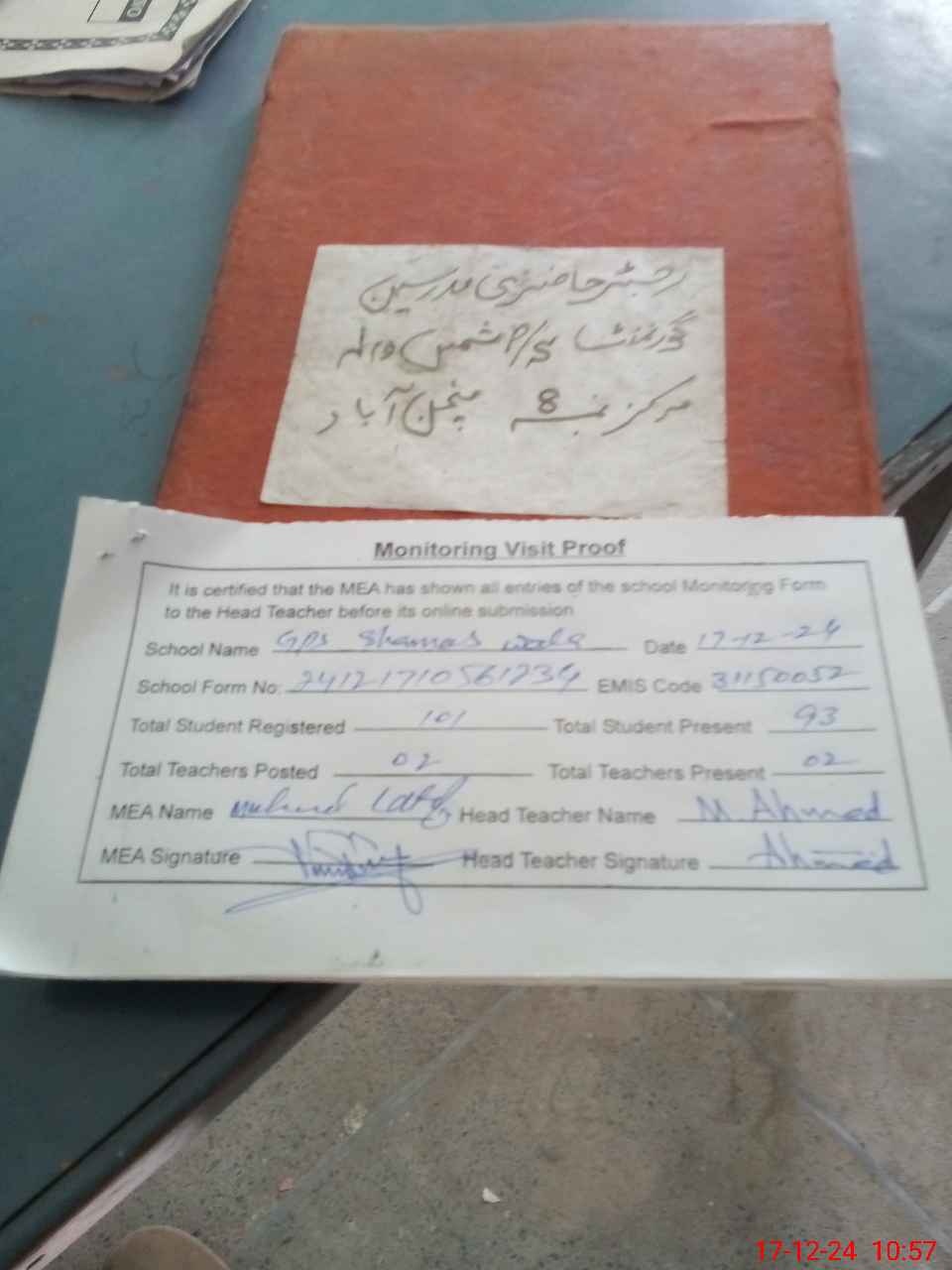| EMIS Code: 31150052 | Name of School: GPS SHAMAS WALA | |||