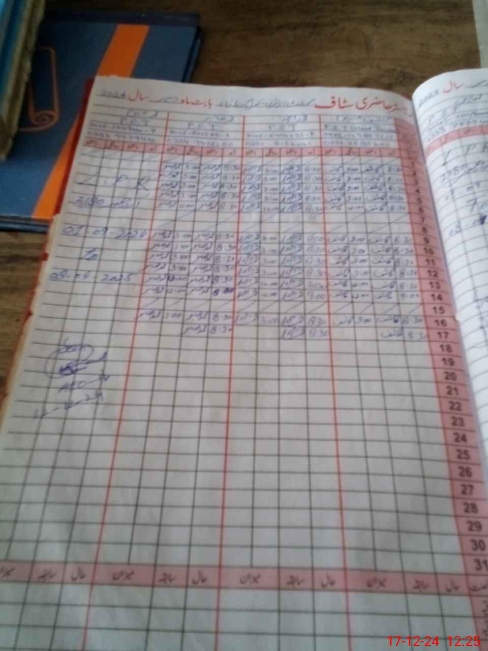 | CNIC | Full Name | Designation | R/C | Absence During Last Calender Month |