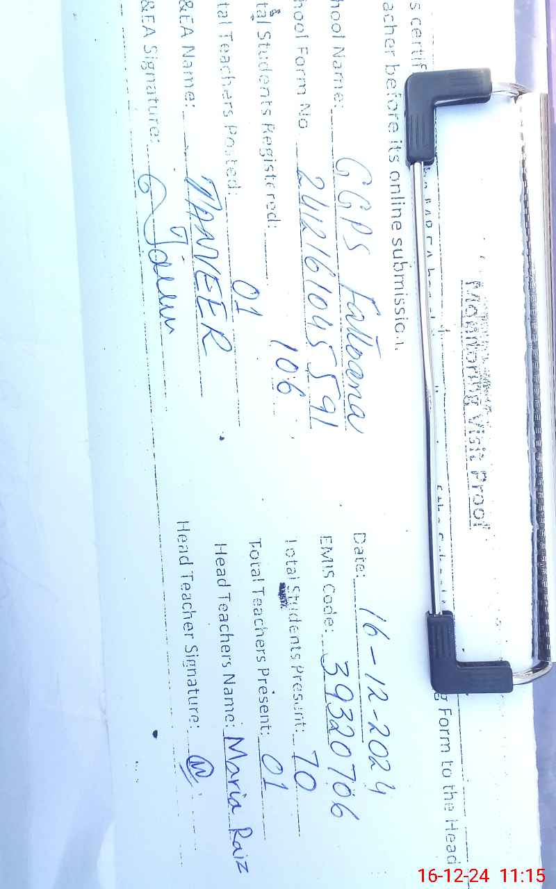 | Name: Ma**** Ri**** Designation: (School Headmaster's/Headmistress's) PST Phone/Cell Number: 03**** |