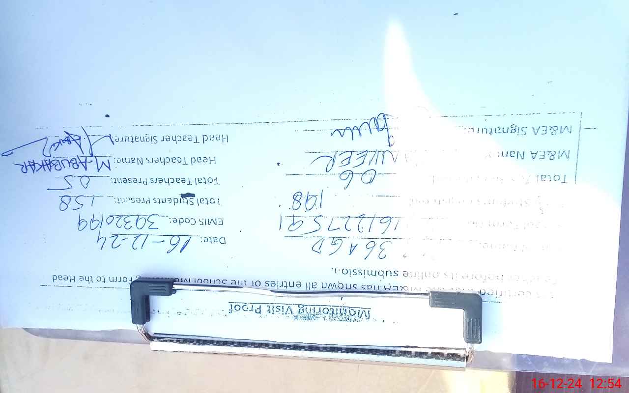 | Attendance Register | Head Teacher | MEA with School | Visit Proof |