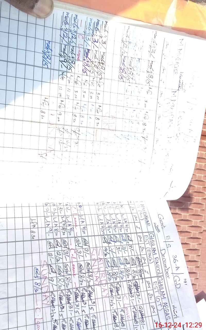 | CNIC | Full Name | Designation | R/C | Absence During Last Calender Month |