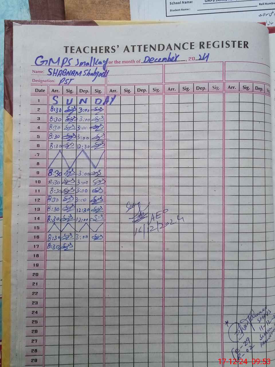 | Name: SH**** SH**** Designation: (School Headmaster's/Headmistress's) PST Phone/Cell Number: 03**** |