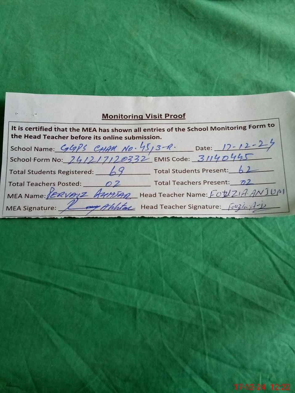 | EMIS Code: 31140445 | Name of School: GGPS CHAK 45/3-R | |||