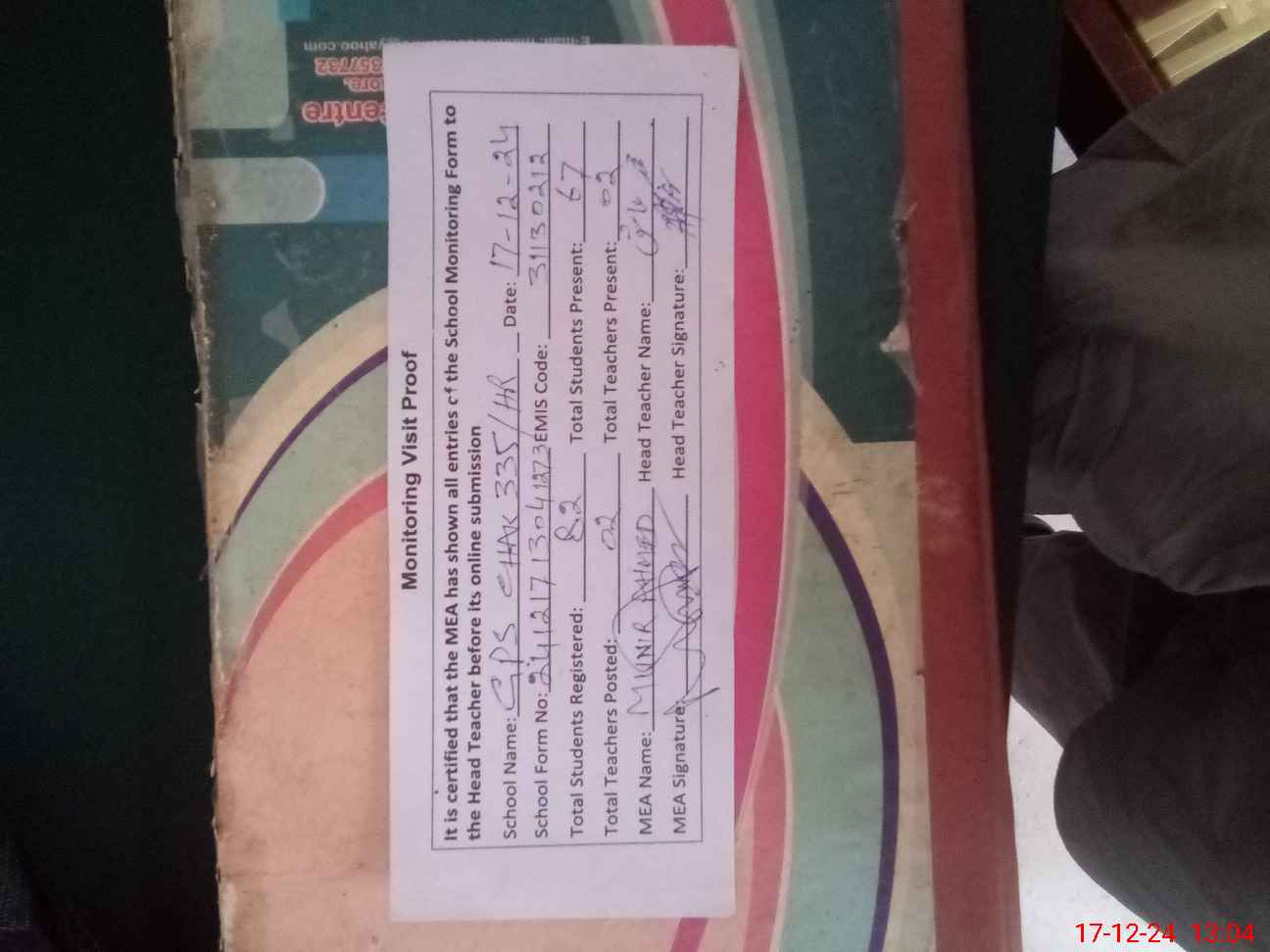 | EMIS Code: 31130212 | Name of School: GES CHAK NO 335/HR | |||