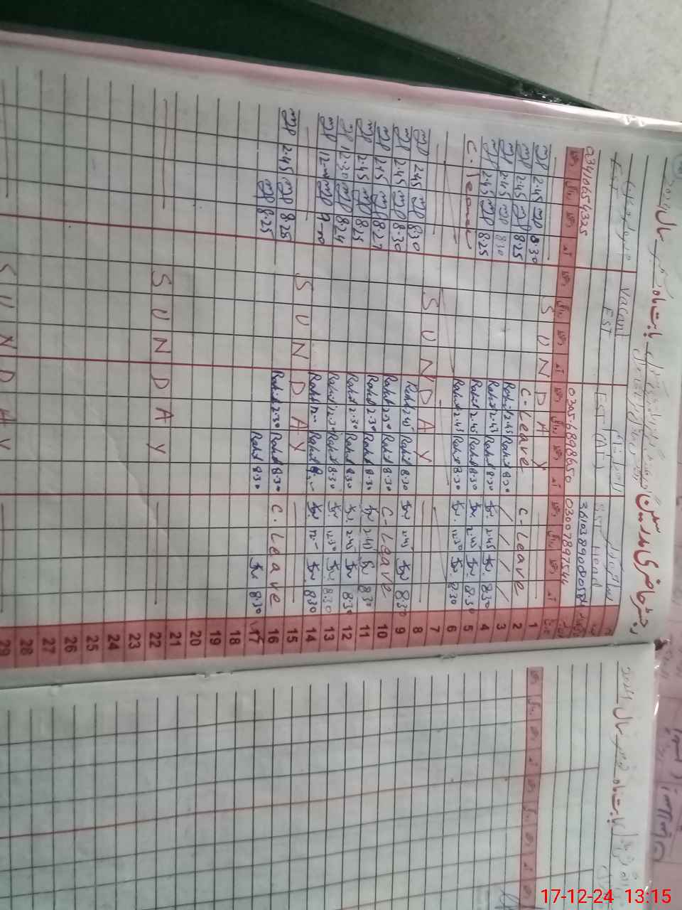 | CNIC | Full Name | Designation | R/C | Absence During Last Calender Month |