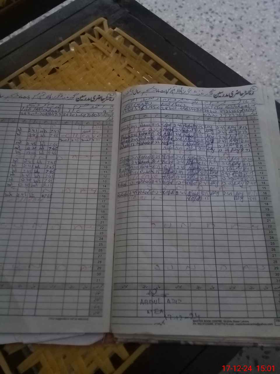 | CNIC | Full Name | Designation | R/C | Absence During Last Calender Month |