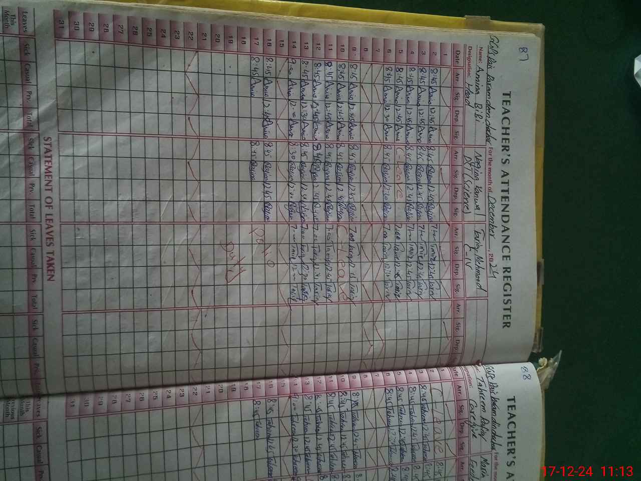 | No. of Students Present - Male | 0 | 0 | 0 | 0 | 0 | 0 | 0 | 0 | 0 | 0 | 0 | 0 | ||||